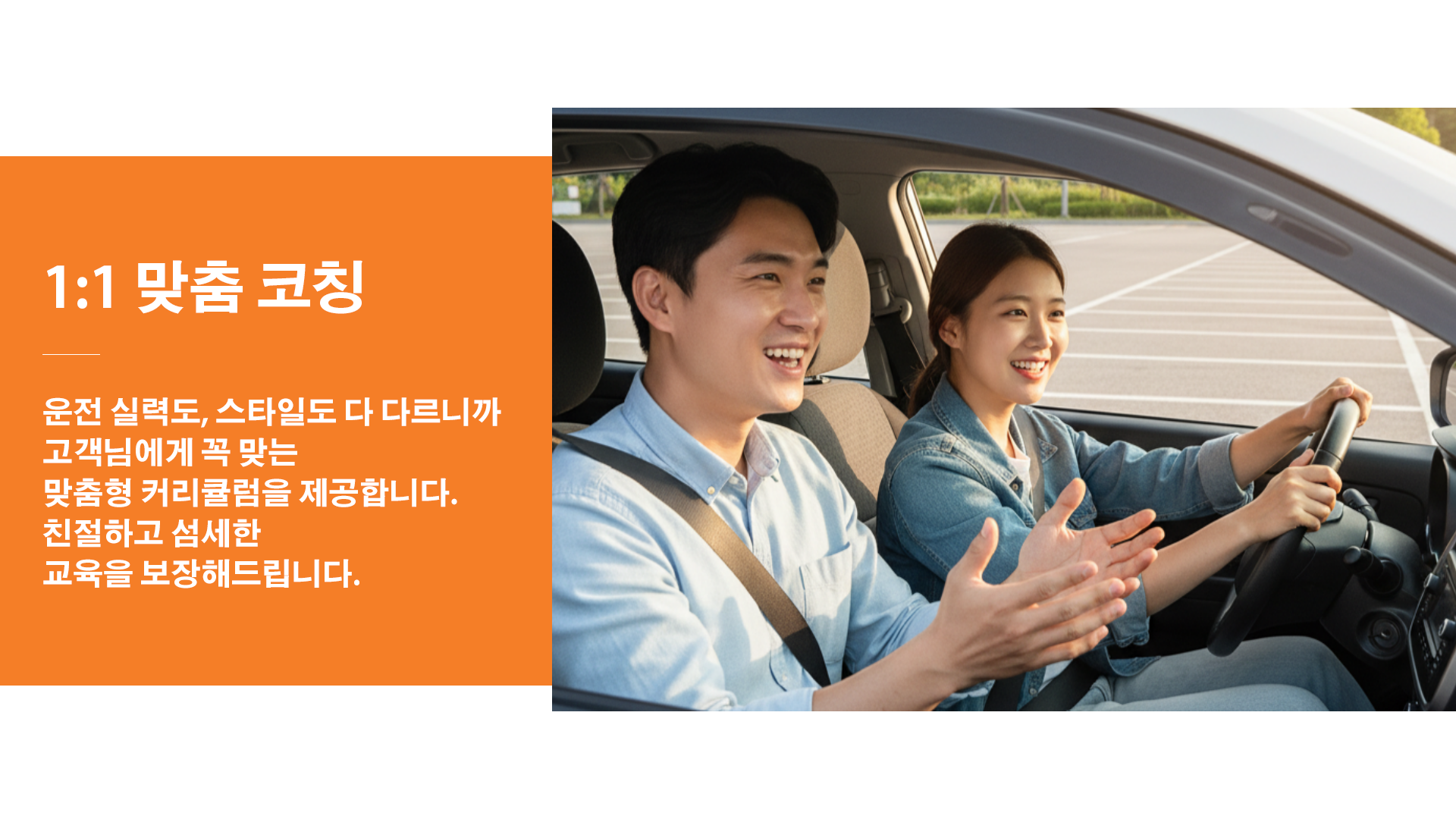 보통은 자차 중심으로 진행되지만, 일부는 보조브레이크가 장착된 연수차를 활용하기도 합니다. 자차로 진행할 경우 차량 상태와 보험 조건을 사전에 확인하는 것이 안전합니다.